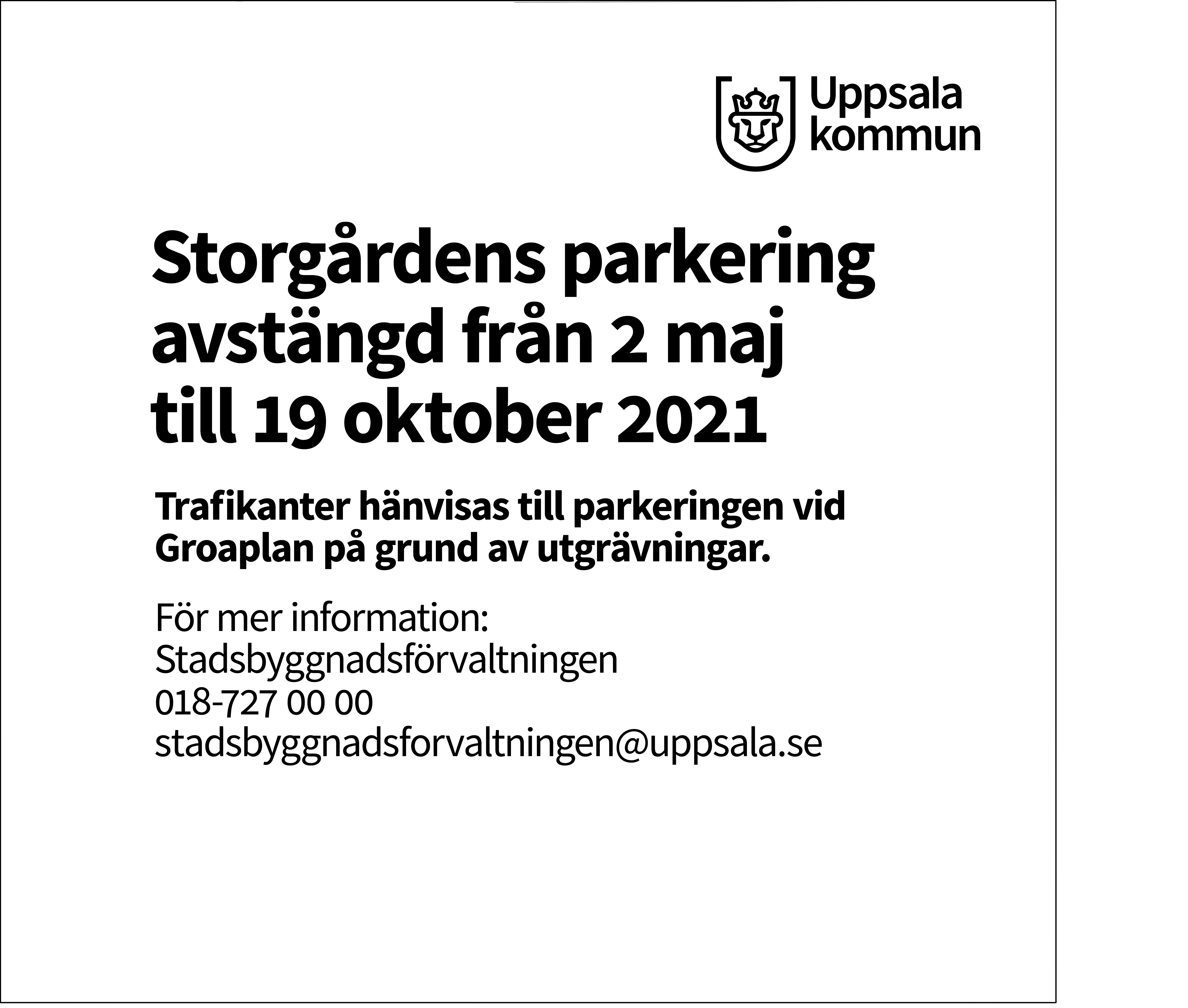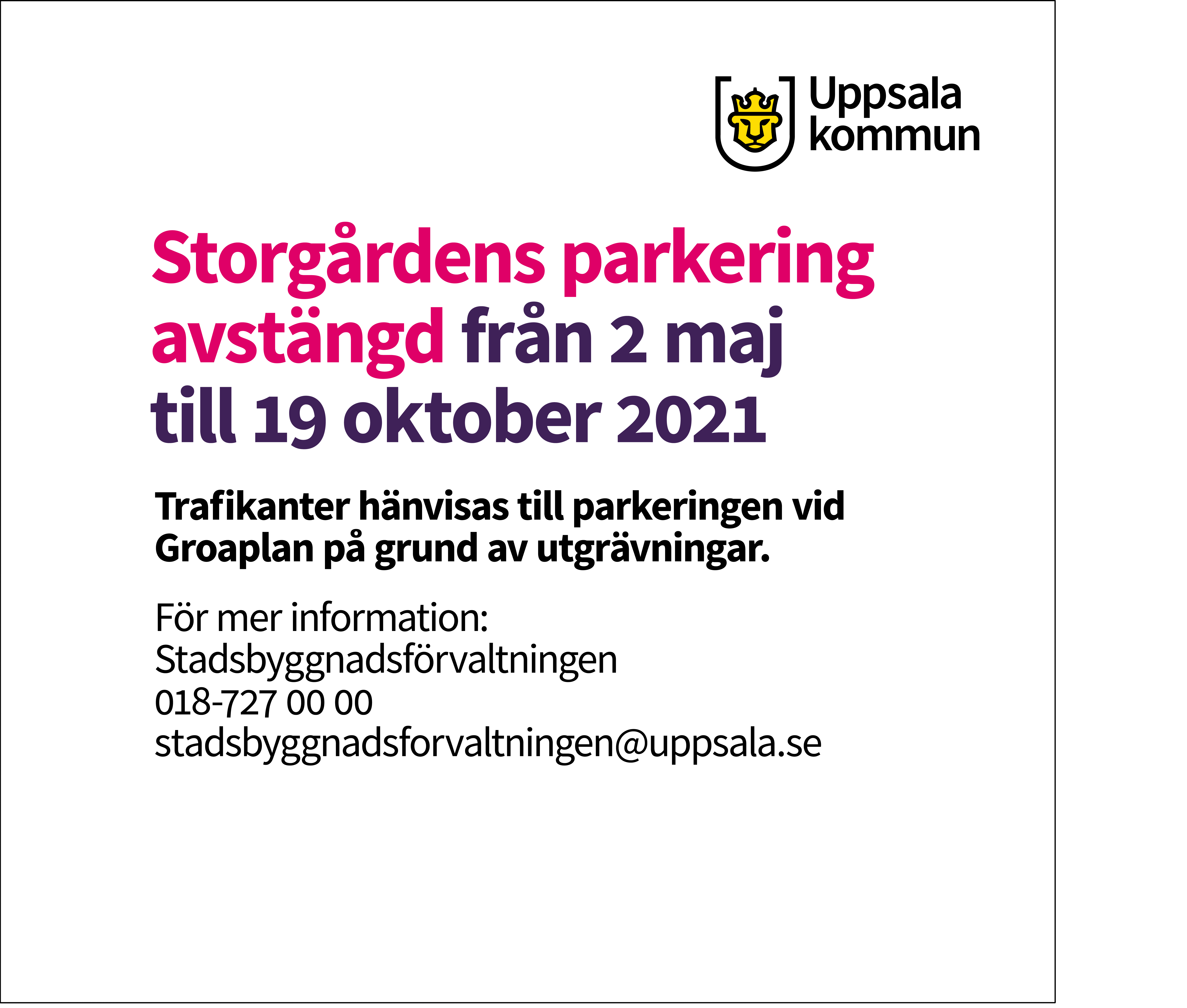 I Uppsala pågår många bygg- och anläggningsprojekt. Med hjälp av skyltar synliggör kommunen för uppsalaborna om vad som händer, varför och vid behov vad arbetet ska leda till. På så sätt synliggör vi också pågående utvecklingsarbete i stadsrummet.